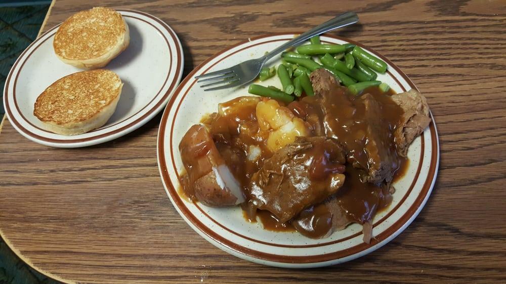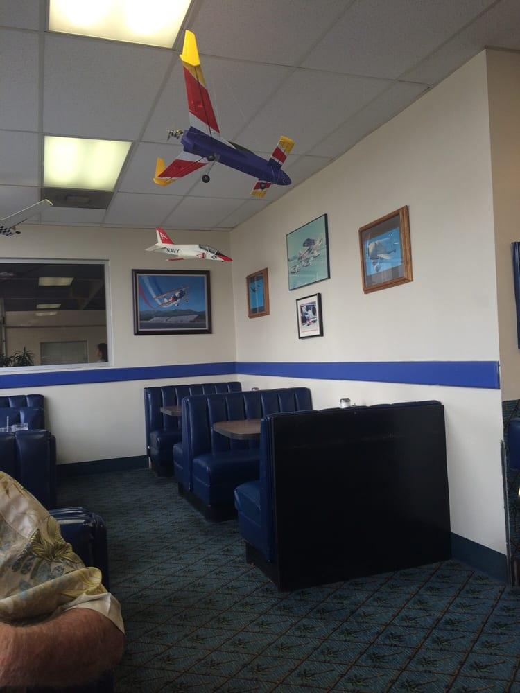 I love this cafe. Its a perfect people place especially for the weary traveler. You might end up having conversation with a pilot or veteran local or chaplain if your lucky. Service is friendly and I like to order the cream of wheat with 4 strips bacon and 2 eggs over easy. Good coffee. American classic restaurant. Bring a newspaper to read and there is a tv